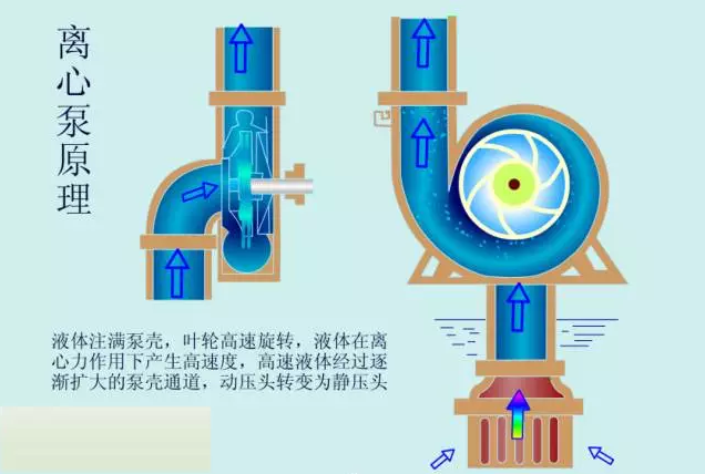泵內(nèi)的液體被拋出后,葉輪的中心形成了真空,在液面壓強(qiáng)(大氣壓)與泵內(nèi)壓力(負(fù)壓)的壓差作用下,液體便經(jīng)吸入管路進(jìn)入泵內(nèi),填補(bǔ)了被排除液體的位置。