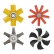 ③葉輪可配置3/5/6/8個鐮刀形右葉片,設置角度從20°到37.5°,并產(chǎn)生吸入或吹出氣流
