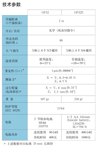 MARPOSS測頭OP32系列產(chǎn)品參數(shù):