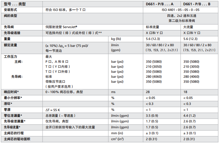 MOOG比例閥D660系列是應用于兩通、三通、四通和五通的節(jié)流型流量控制閥。這些閥適用于電液位置、速度、壓力或電液力控制系統(tǒng)。D660系列控制電路革新,采用了SMD技術和24V DC供電電源。超大流量閥體流道設計,并可選擇使用X和Y口進行先導級外控、外泄。D660系列比例閥有二級和三級構造兩種形式。二級比例閥主要運用在小信號時要求較高分辨率和較高動態(tài)響應的場合中,而三級比例閥適用于在較大指令信號下有較高動態(tài)響應要求的場合,比例閥結合了快速響應的先導級、合理的滑閥驅動面積和集成電路板功能,所以D660系列比例閥具有最佳的控制性能。